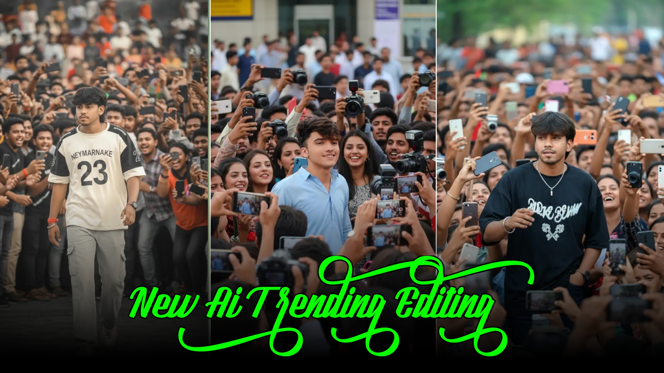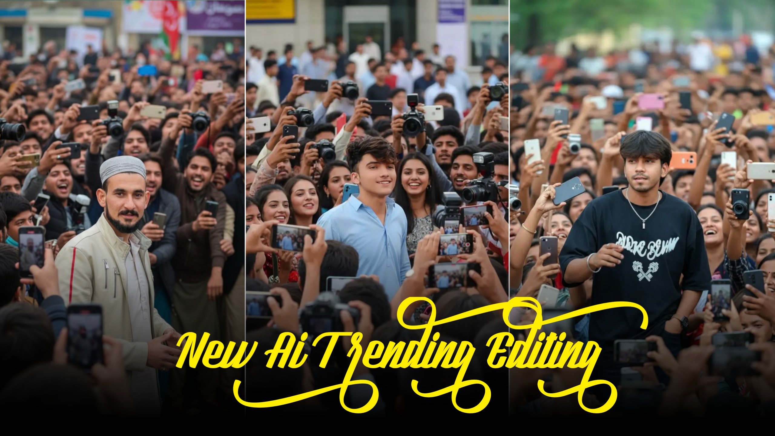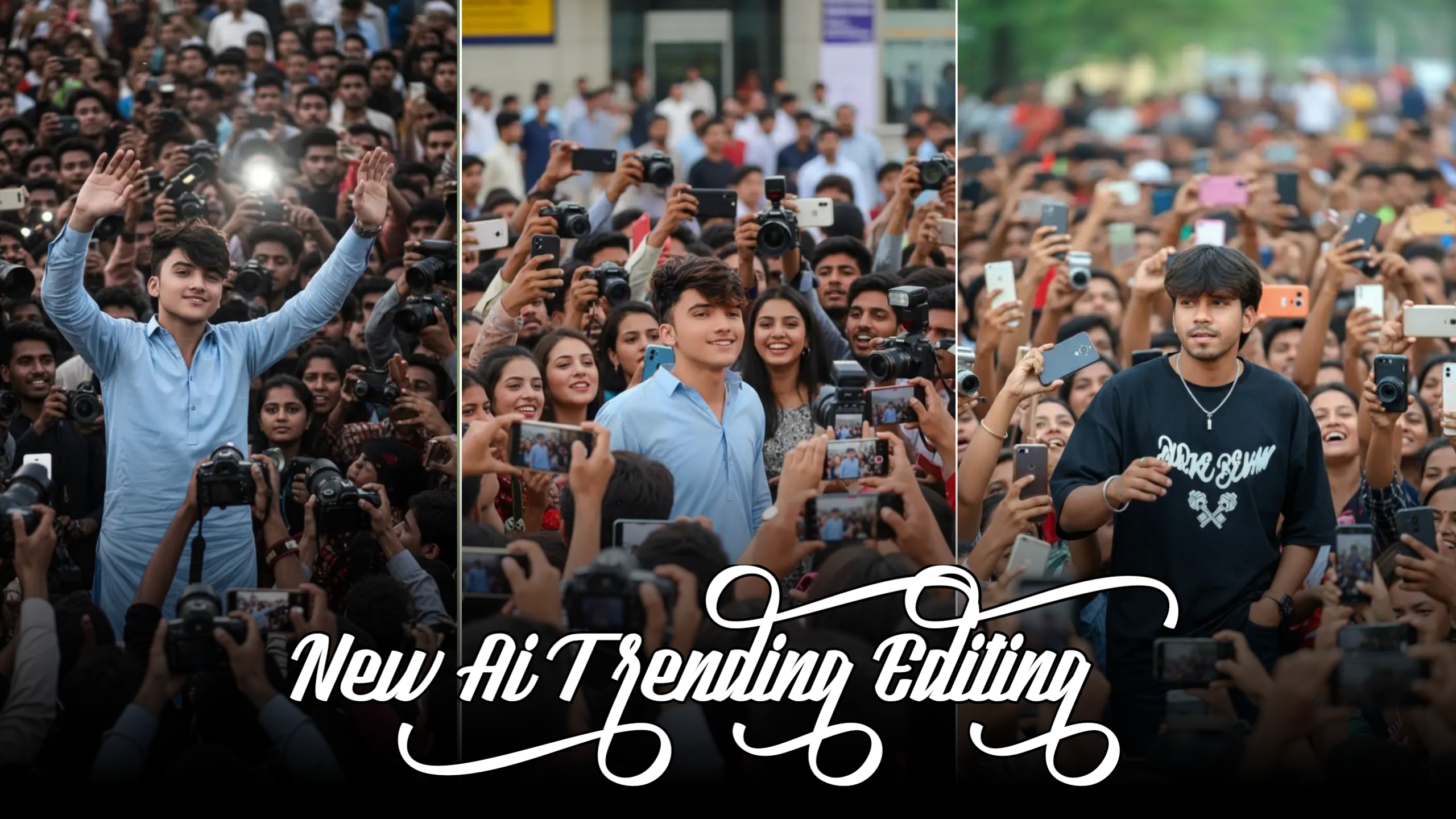 Ultra realistic candid photo of a (as in reference), standing in a crowded place with people holding cameras and taking photos.The background is filled with fans and a little chaos of crowd, giving a true celebrity vibe. The photo should look like a real-life captured moment, with natural lighting, sharp details, and authentic atmosphere.